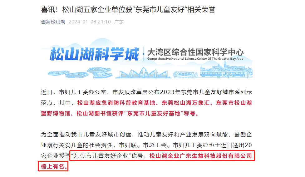 广东必一运动荣获“东莞市儿童友好企业”称号