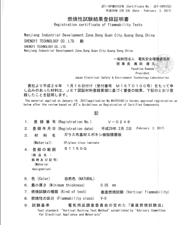 • S11150G JET Certificate