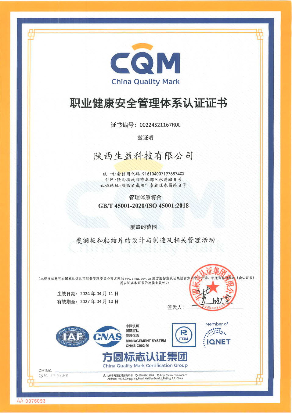 ISO 45001 Occupational Health and Safety Management System Certificate(Shaan Xi)