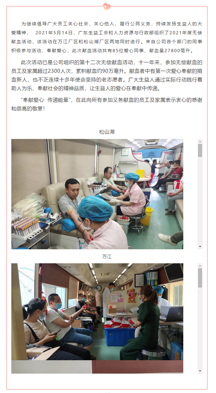 奉献爱心,传递能量——广东必一运动举行2021年度无偿献血活动