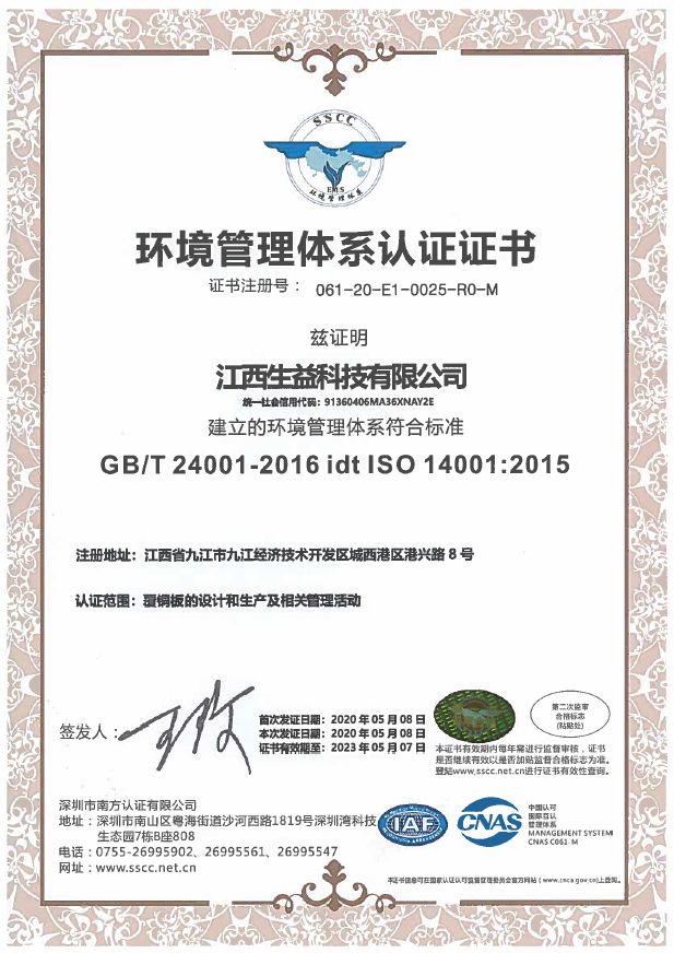 ISO14001证书(江西必一运动)